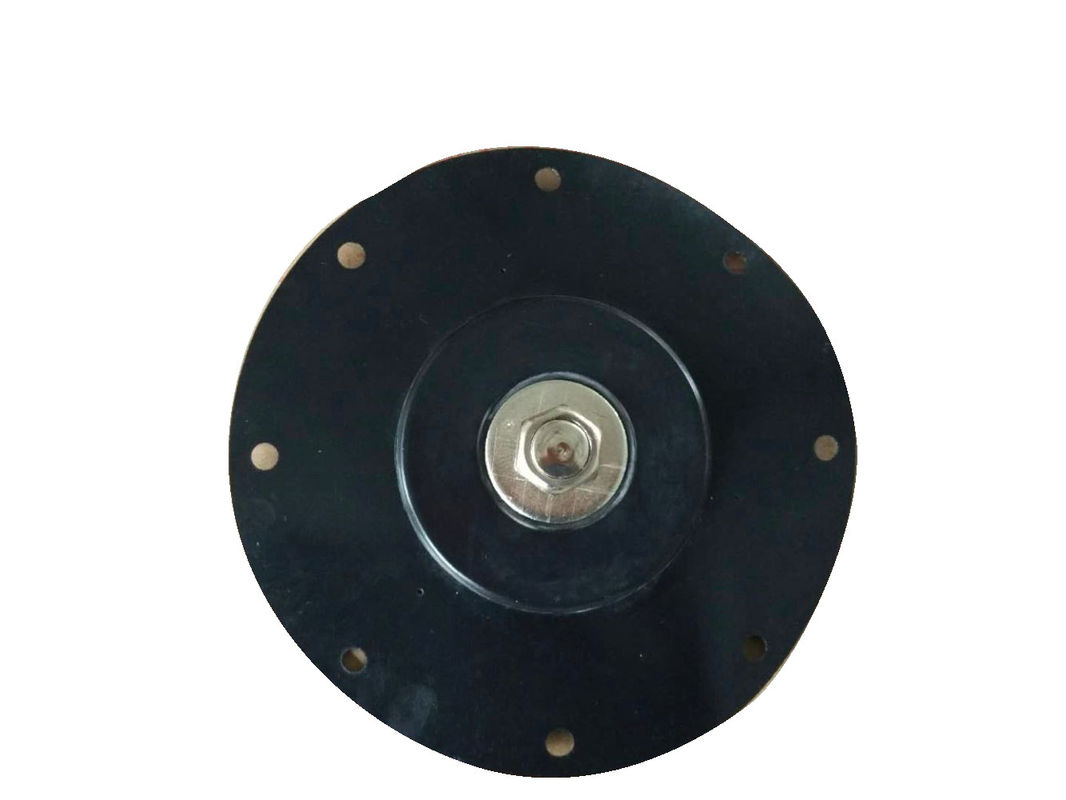 Membrana zaworu elektromagnetycznego to cały kawałek gumowej membrany zamontowanej z głowicą nitującą służącą do blokowania rurociągu sprężonego powietrza lub wylotu powietrza zaworu blokującego, otworem odpowietrzającym i otworem na śrubę do mocowania wokół niej.Jest to kluczowa część sterująca elektromagnetycznego zaworu impulsowego.